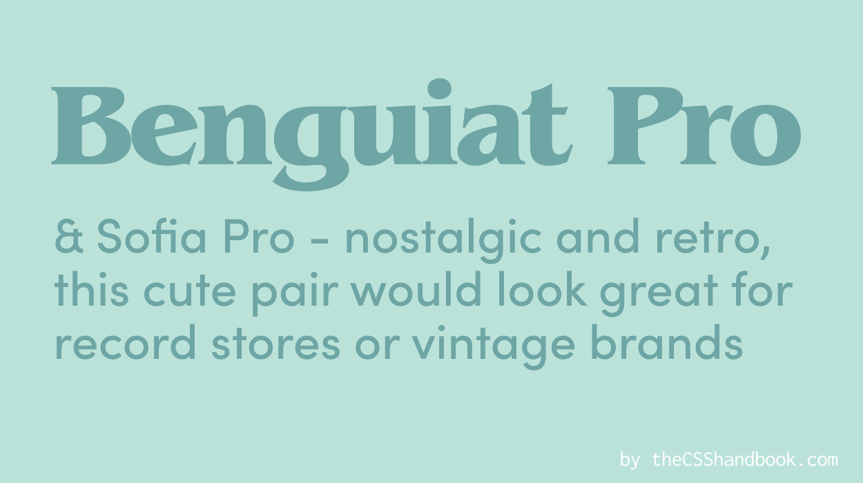 Benguiat Pro is the nostalgia of fonts - decorative and retro. It’s perfect for creative or retro-inspired brands. Pair it with Sofia Pro for a balanced look. It’s like a vintage record player spinning modern beats!