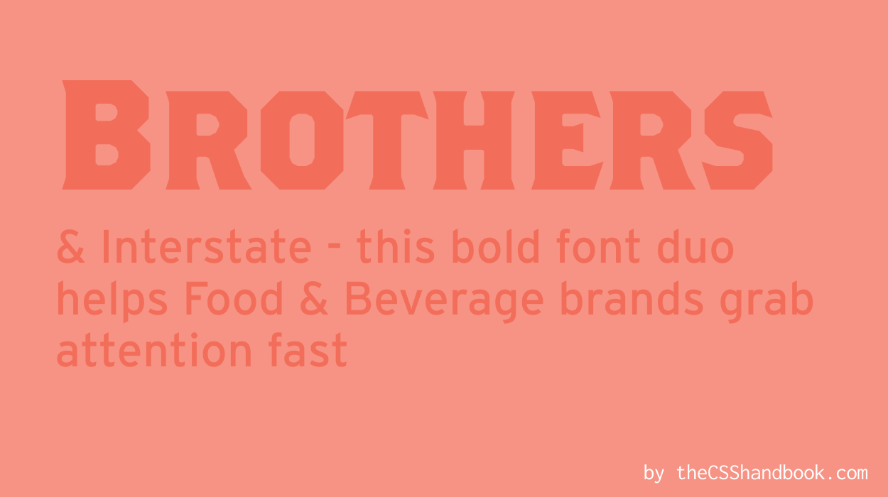 Brothers is the rockstar of fonts - bold and attention-grabbing. Pair it with Interstate for a dynamic look. From neon-lit burger joints to internationally-known soda drinks, this pair is perfect for entertainment or food and beverage brands.