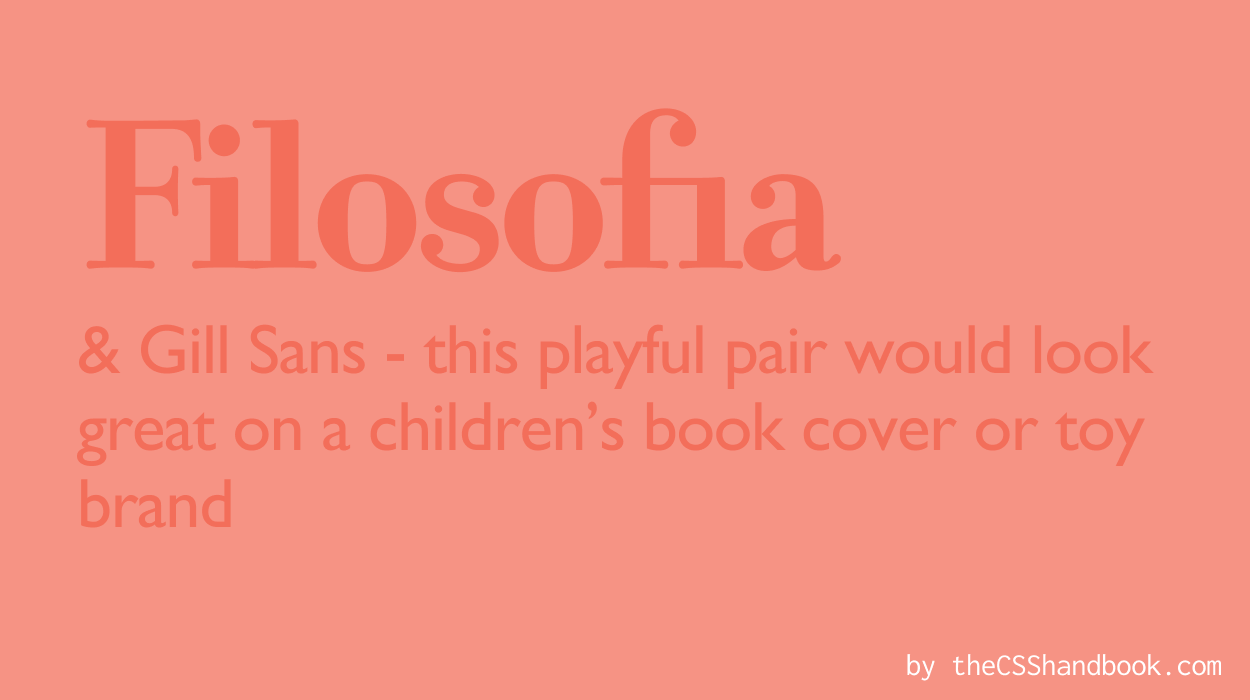 Filosofia is as playful and thoughtful like a fantasy storyteller. Children’s book writers will love it! Pair it with Gill Sans for a sophisticated look. It’s like a book of poems with a stylish cover!