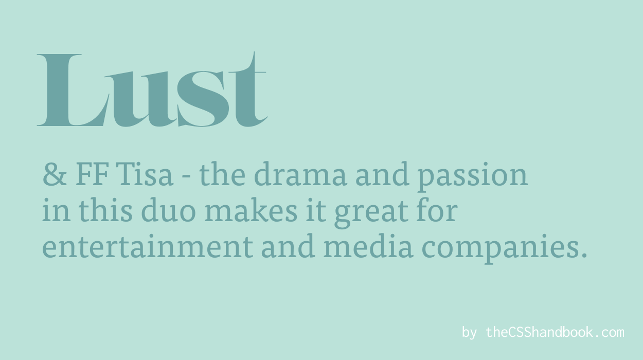 Lust is the drama queen of fonts - bold and passionate. It’s perfect for brands with a sexy, unapologetic aesthetic. Pair it with FF Tisa for a striking contrast. Use this sensual pair for feminine beauty brands or late night cafe menus.